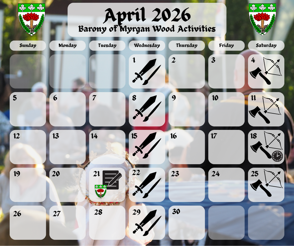 The Barony of Myrgan Wood has hosted demonstrations in the past. We’ve presented at schools, conventions, and festivals in order to share our love of all things medieval.